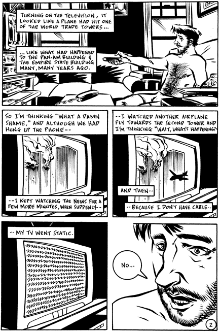 The terrorist attacks in New York, Washington DC, and Pennsylvania on September 11, 2001 touched people worldwide, and cartoonists have turned to art to express their grief and support. 9-11: Emergency Relief is a comic book project to benefit the American Red Cross featuring some of the comic world's leading talents. From legendary creators such as Will Eisner and Harvey Pekar to new talents on the cutting edge of the comics medium such as James Kochalka and cover artist Frank Cho, over 80 cartoonists from all areas of the cartooning world have joined together in this community effort. Released January 2002 from Alternative Comics, 9-11: Emergency Relief is a collection of these cartoonists' personal non-fiction accounts of their experiences related to the tragedy.