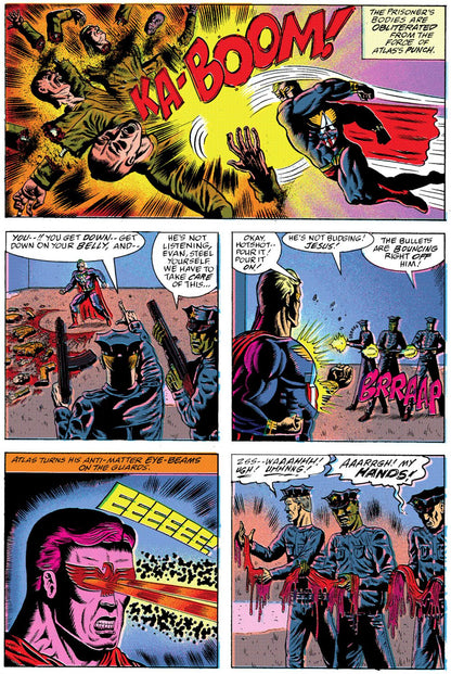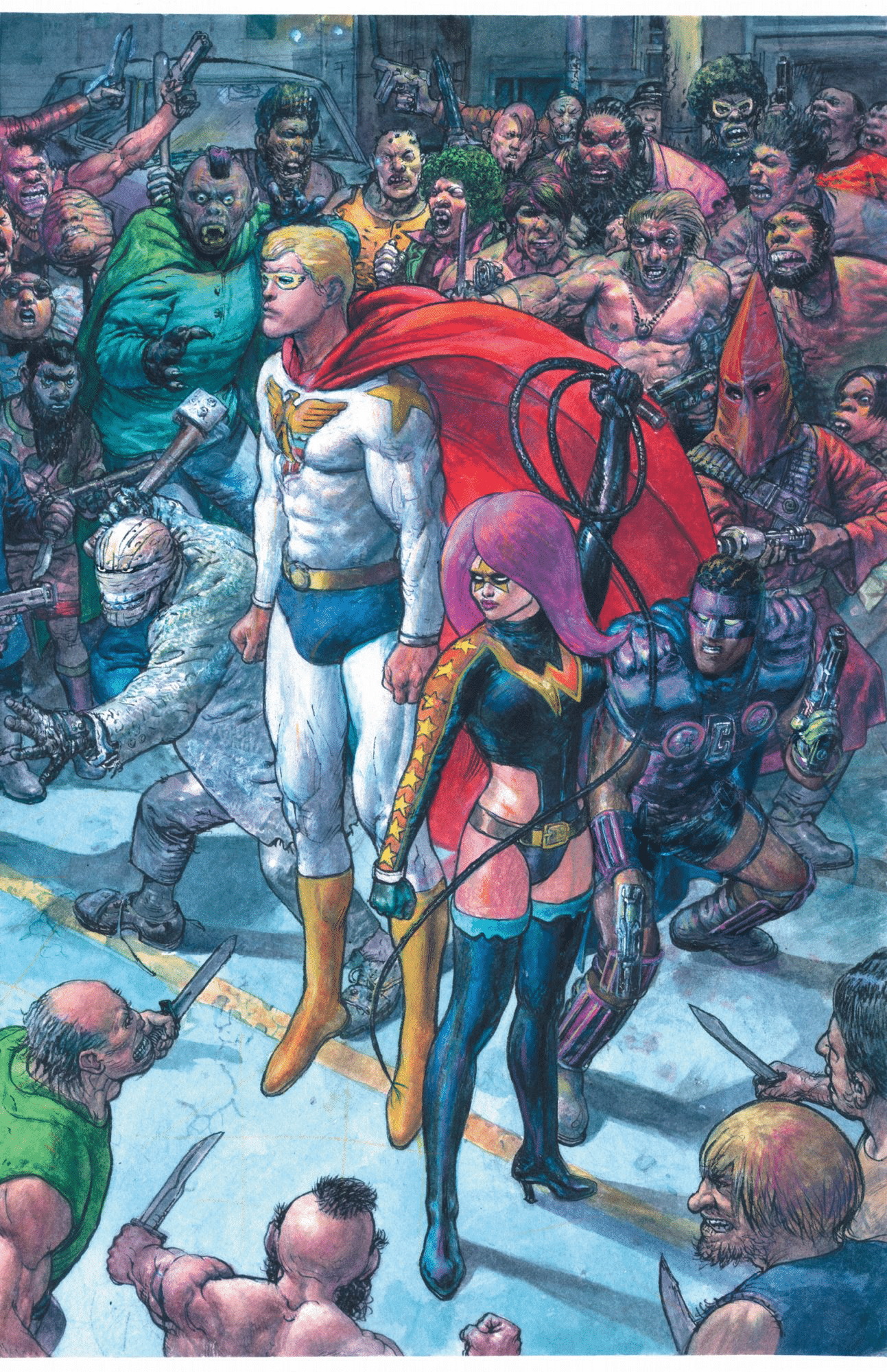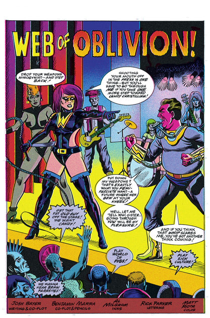 These four heroes face an over-the-top lineup of villains including The Misogynist, Raingod, White Warlock, Krimson Kross, P.S.Y.C.H.O., and the Time Vampire.