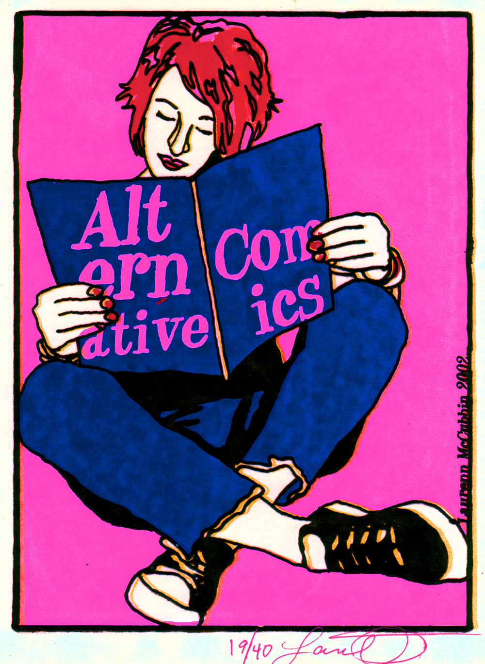 Four color screen print by Laurenn McCubbin - illustrator of XXX Live Nude Girls, Rent Girl and Warren Ellis' Quit City. Limited edition of 40. Signed and numbered by the artist.