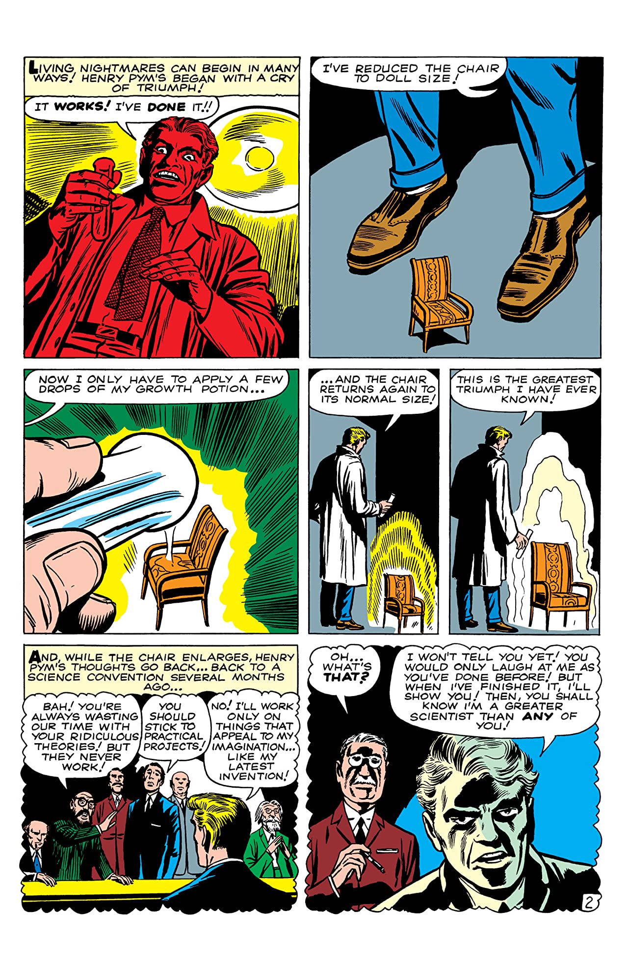 A man of action and a man of science, Dr. Henry Pym invented an amazing growth serum and a cybernetic helmet, and with them he became -- the Astonishing Ant-Man! Pym soon teamed with Janet Van Dyne, the winsome Wasp, and the two tiny titans went on to battle an array of mini- and maxi-sized menaces from the Scarlet Beetle to the Black Knight! But adventures in the microscopic world weren't enough for one of the Marvel Age's first super heroes. Soon, Ant-Man became the biggest Avenger there ever was -- Giant-Man!