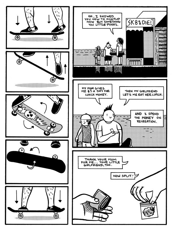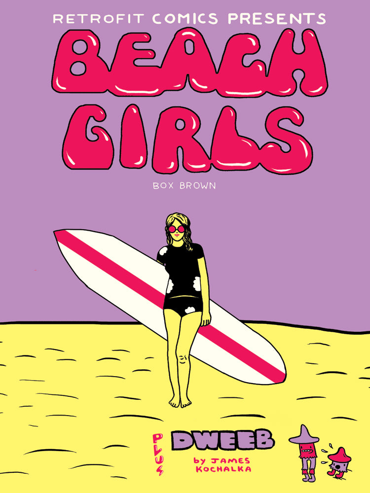 Thirty-five pages of Box Brown’s beach epic “Beach Girls”, featuring skating, surfing, nudity, weed smoking, parties and everything else you’ve come to expect from summer. PLUS you get “Dweeb” a ten page bonus comic by James Kochalka featuring the hopelessly naïve fungi from Fungus and Alternative Comics #4 stumbling upon a passed-out young lady.