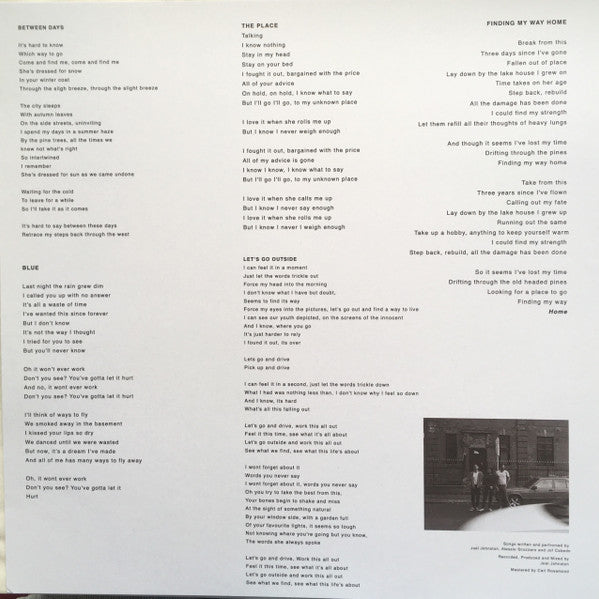 Tracklist: . Side A, 1. Between Days, 2. Blue, 3. The Place, . Side B, 4. Let's Go Outside, 5. Finding My Way Home