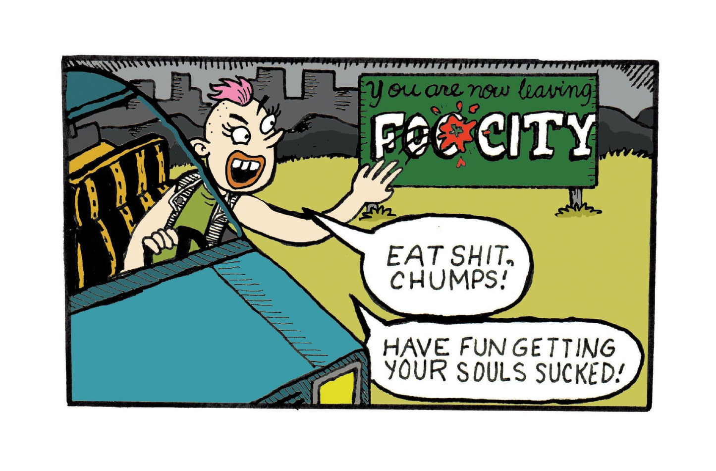 Janelle Hessig's Tales of Blarg helped define east bay punk fanzines in the '90s and beyond. Cartoonist, writer, riot grrrl muse, and one-woman laff factory, Janelle's work can be found in subversive materials hidden under your mattress or hung defiantly on your wall. She's been a touring drummer, a pop culture journalist, and the marketing director for Last Gasp. Her work has appeared in comics anthologies and on punk record covers since the beginning of time. Check out her publishing company Gimme Action for work by Liz Suburbia, Brontez Purnell, and Hessig herself.