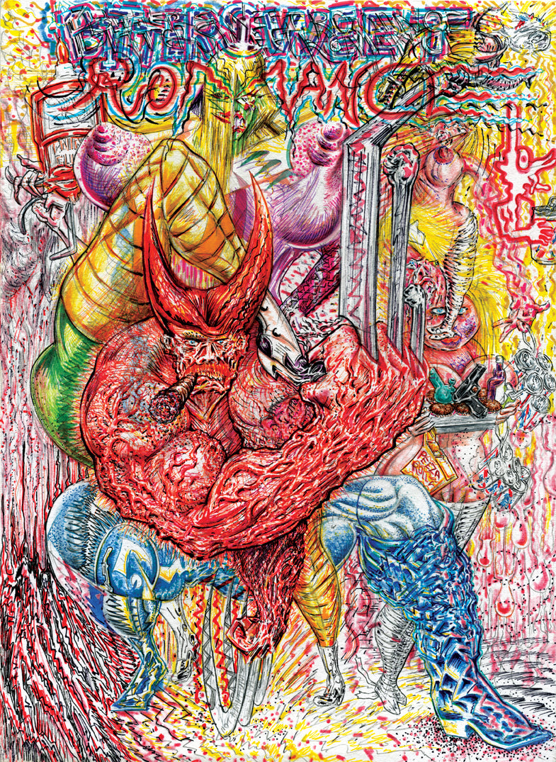 This is a romance comic like none ever seen before? A visual feast akin to the masterworks of Robert Williams fucking Geoff Darrows headless corpse; but taken beyond that into swirling vast landscapes of visual language on the brink of breaking down? a story of fear and inferiority? love and hate?uncontrollable passion and anger?. Showing the worse parts of himself thru the veil of his characters he illuminates these thoughts in all of us.?Hoping to capture Victors raw creativity, the series will include the margins of the page, which until now, the prior publishers of Victors work would remove.