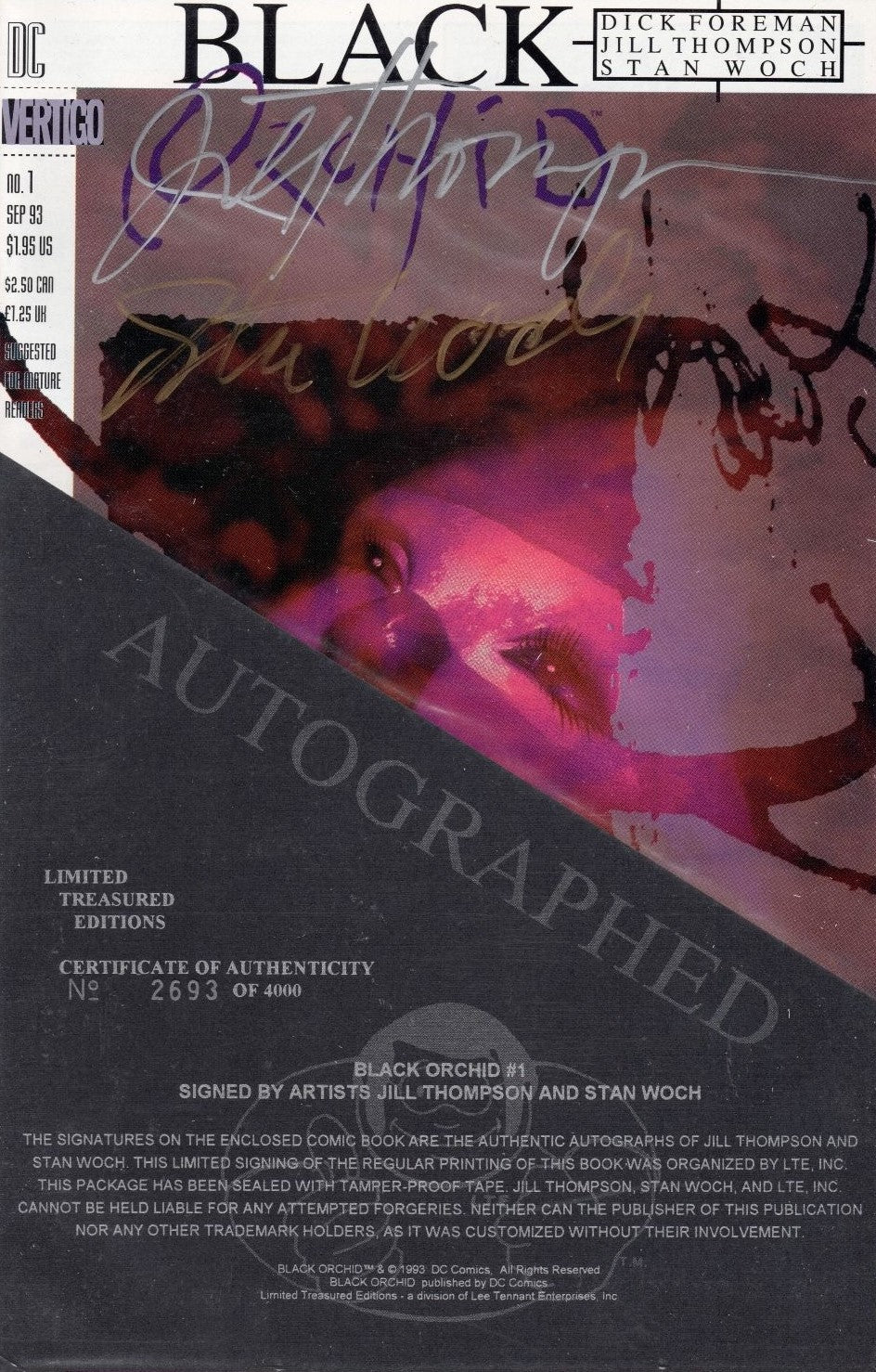 Signed by artists Jill Thompson and Stan Woch. Limited to 4,000 copies. Includes numbered Limited Treasured Editions Certificate of Authenticity with?unbroken?seal.