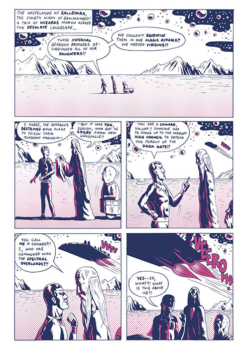 One a mute barbarian blade master. The other, a sweet-talking las-slinger. Together they kidnap wizards to summon and slay Galacto-Demons. The Empire's beautiful Mistress General hires the Gearson Brothers to retrieve an "artifact" lodged within the brain of an infamous Galacto-Demon. But what will happen after the Gearsons summon this galactic terror? What is this mysterious artifact The Empire desires so strongly? Answers lie in this stunning conclusion to BLADES & LAZERS!