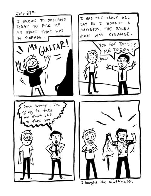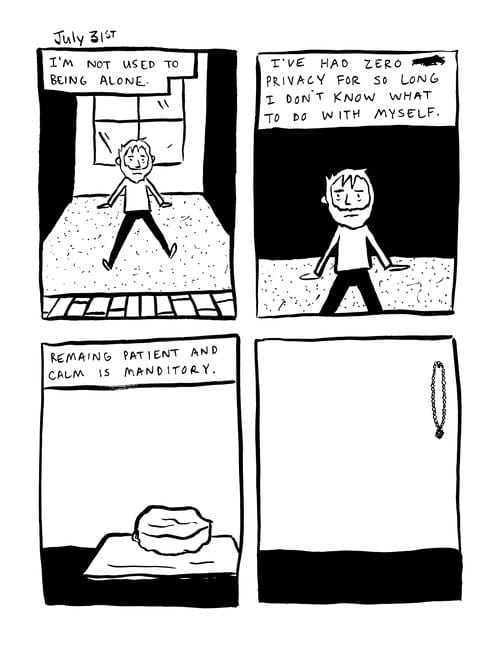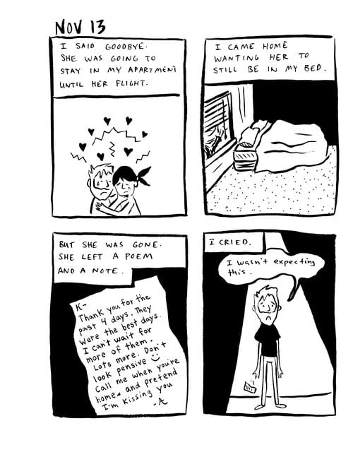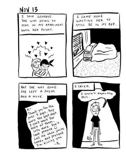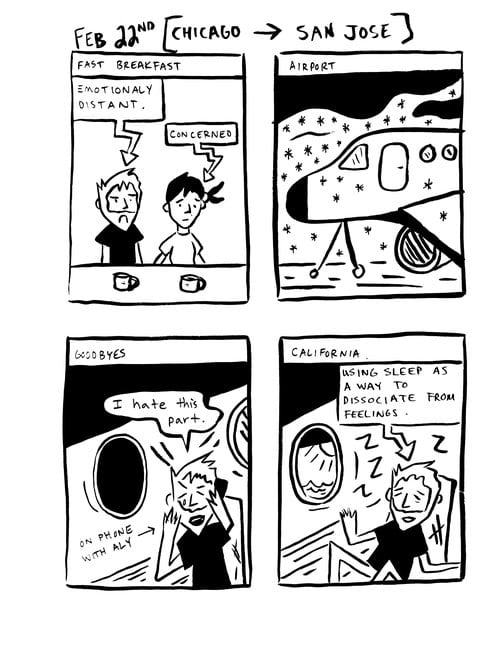 Boundaries is a journal comic that follows Kyle Harter as he makes a new life for himself in California. During his transition, Kyle is forced to confront past trauma that echoes through his professional, personal, and romantic life.