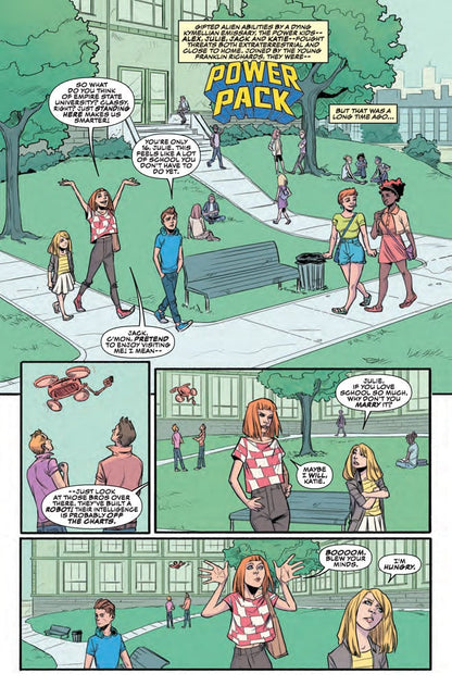 John Allisonโs (Bad Machinery, Giant Days) one and only Marvel story features the return of the young pack of heroes in the Power family.