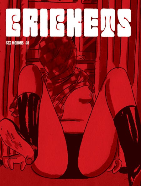 Crickets #3 dedicates the bulk of its oversized pages to the first part of a new story, "Blood of the Virgin," which tracks the upside down world of exploitation movie making in Los Angeles in the early seventies through the eyes of an ambitious young film editor who catches a big break. Rounding at the issue are handful of short strips, letters and gags featuring Franz Kafka, boxing, Yale University, and pregnant wives. Mature Readers Only!