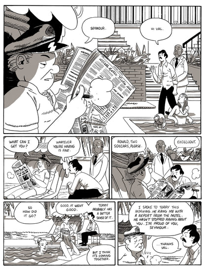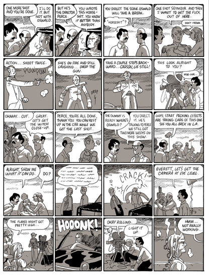 Award winning creator Sammy Harkham (Kramers Ergot, Poor Sailor, Everything Together) returns with another all new giant chapter of his acclaimed long form strip, "Blood of the Virgin," which tracks the ins and outs of the Hollywood exploitation movie scene in the early 1970s in all its bizarre, mundane, graphic, glory.