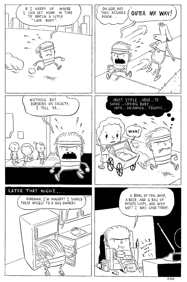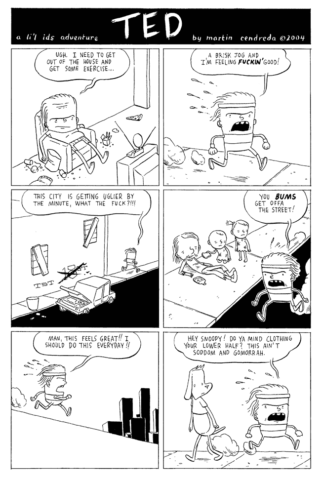 Dang!, the first prime-time comic book by fabulous cartoonist Martin Cendreda, follows the sad and tragic life of good ole' Herbert Hound and his encounters with obnoxious teens, fashion conscious yuppies and twin homeless orphans. Guffaws abound in Martin's delightfully drawn comic, with an art style hinting at Clowes and Chester Brown, yet with chops that are uniquely his own.