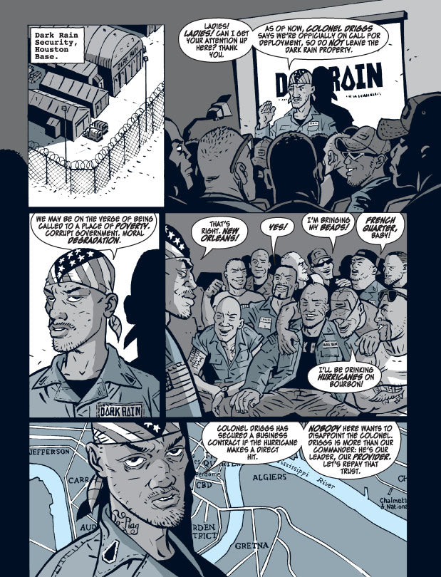 From Mat Johnson, writer of the acclaimed Incognegro, comes a graphic novel thriller set in the days after Hurricane Katrina. Two small-time ex-cons with big dreams get the idea that this would be the perfect time to rob a bank. Catch is, the bank is in New Orleans, and they're on parole in Houston. Now, as every sane person tries to get out of The Big Easy, Emmit and Dabny will do whatever it takes to get in. As they journey through a tide of human suffering, Dabny wants to help, and Emmit sees only the money. But a rogue commander of the ruthless security force "Dark Rain" has his sights set on taking down the same bank. If Emmit and Dabny don't outrace him, their last hope for a second chance could be washed away in the floodwaters – along with their lives.