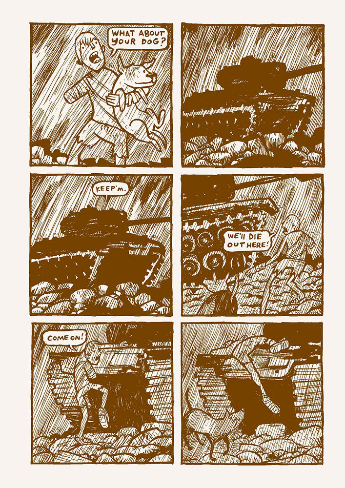 Ralph’s stunning debut was the wordless graphic novel Cave-In, created while he was one of the founding members of the influential Fort Thunder art collective. Drawing inspiration from zombies, horror movies, television, and first-person shooter video games, Daybreak departs from zombie genre in both content and format, achieving a living-dead masterwork of literary proportions.