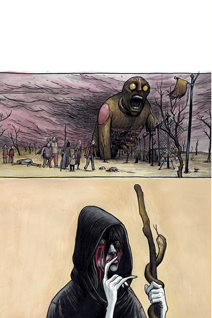 Delusional is a book of comics and drawings by cartoonist Farel Dalrymple. You might have seen them in various anthologies, or posted on the internets, but now they are collected into one beautiful tome. Farel's previous work includes Pop Gun War, Omega the Unknown and the occasional Prophet.