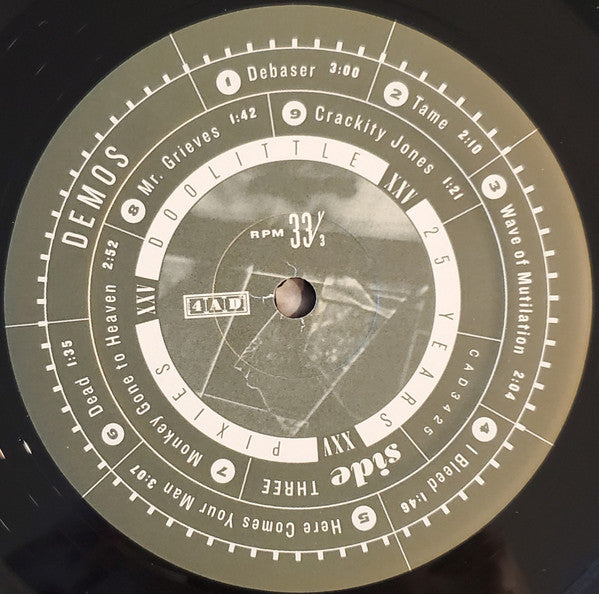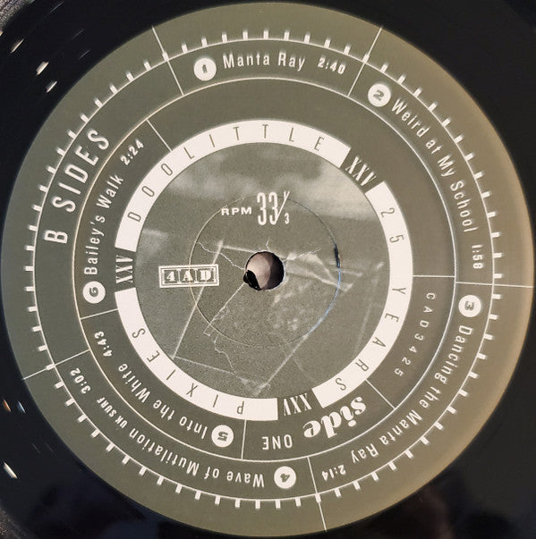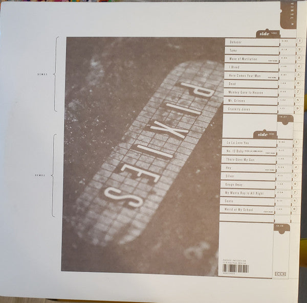 Tracklist: . B Sides, A1. Manta Ray, A2. Weird At My School, A3. Dancing The Manty Ray, A4. Wave Of Mutilation (UK Surf), A5. Into The White, A6. Bailey's Walk, . Peel Sessions 18/10/88, B1. Dead, B2. Tame, B3. There Goes My Gun, B4. Manta Ray, . Peel Sessions 02/05/89, B5. Into The White, B6. Wave Of Mutilation, B7. Down To The Well, . Demos, C1. Debaser, C2. Tame, C3. Wave Of Mutilation (First Demo), C4. I Bleed, C5. Here Comes Your Man (1986 Demo), C6. Dead, C7. Monkey Gone To Heaven, C8. Mr. Grieves, C9. Crackity Jones, D1. La La Love You, D2. No. 13 Baby Viva La Lomo Rica (First Demo), D3. There Goes My Gun, D4. Hey (First Demo), D5. Silver, D6. Gouge Away, D7. My Manta Ray Is All Right, D8. Santo, D9. Weird At My School (First Demo), . Original Album, E1. Debaser, E2. Tame, E3. Wave Of Mutilation, E4. I Bleed, E5. Here Comes Your Man, E6. Dead, E7. Monkey Gone To Heaven, F1. Mr. Grieves, F2. Crackity Jones, F3. La La Love You, F4. No. 13 Baby, F5. There Goes My Gun, F6. Hey, F7. Silver, F8. Gouge Away