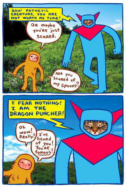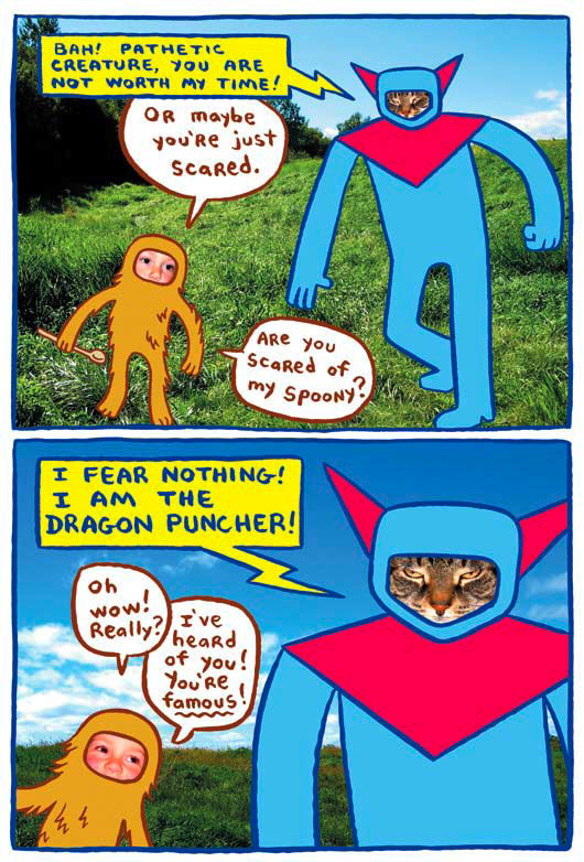 Boldly combining Kochalka's signature cartooning with hilarious photography, Dragon Puncher is also a unique visual treat. Kids will go nuts for this goofy backyard adventure.