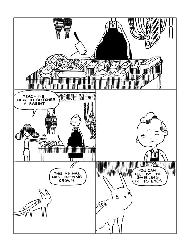 The debut of Michael DeForge's new series. Set in 1884 Canada, a family leaves Muskoka for the undeveloped wilderness. Also, learn about the danger of small rabbits and rotting crown disease.