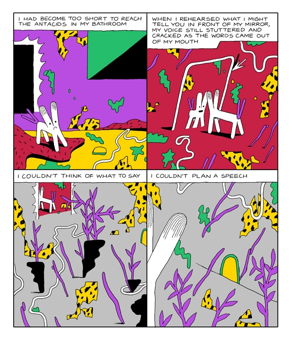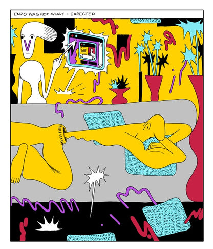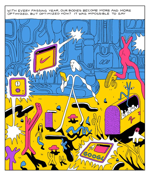 Michael DeForge’s ability to find the humanity and emotional truth within the outlandish bureaucracy of everyday life is unparalleled. The signatures of DeForge’s work - a vibrant color palette, surreal designs, and self-aware sense of humor - enliven an often-bleak technocratic future. Familiar Face is a masterful and deeply funny exploration of how we define our sense of self, and how we cope when so much of life is out of our control.