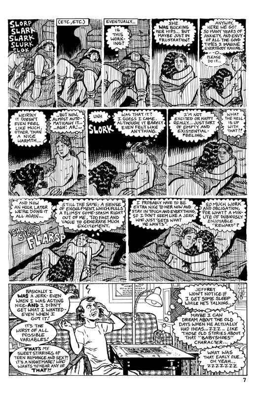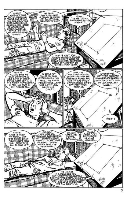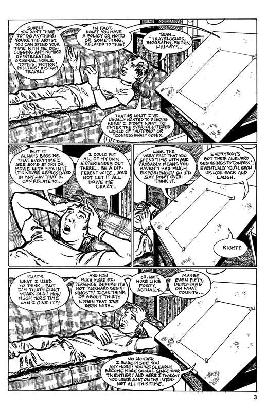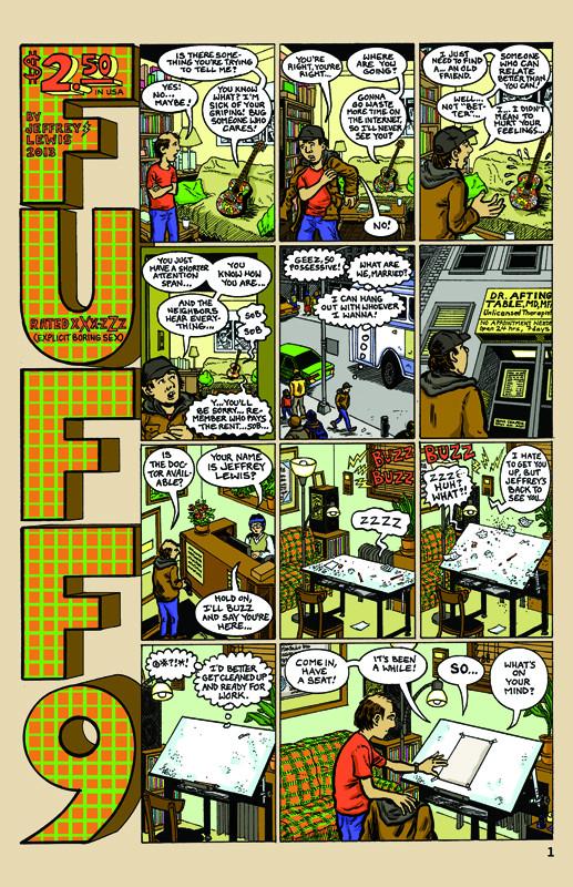 In this issue Jeffrey begins an autobiographical sexual tell-all, confessing everything to the only therapist who will listen, his art desk… but even the desk soon falls asleep and dreams of an elaborate fictional tale involving a junkie, a mutant and a wrestler, maintaining the Fuff tradition of balancing fiction vs. non-fiction content!