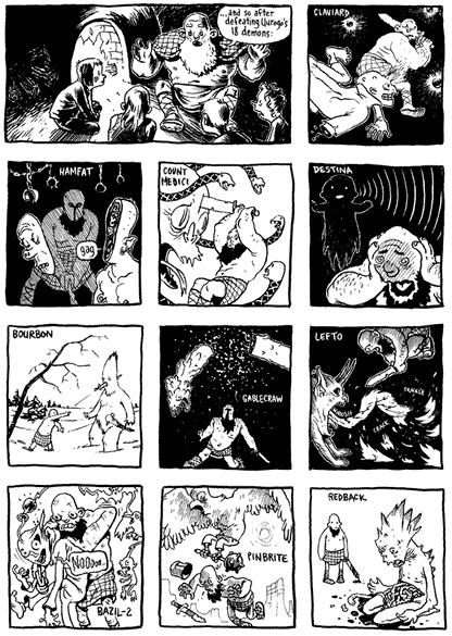 Adventure Time artist Thomas Herpich serves up grieving aliens, familiar pilgrims, dimwitted doppelgangers, platonic friends, and more, in quiet optimistic tales of imprisonment, spiritual possession, and torture. Tom Herpich (creator of Cusp) confronts as many vague paradoxes as he can get his hands on in this informal study of personal responsibility and its consequences. (BTW, it's "Gongwanadon" pronounced: 'gon' as in don, 'gwan' as in don, 'a' as in uh, and 'don' as in don.)