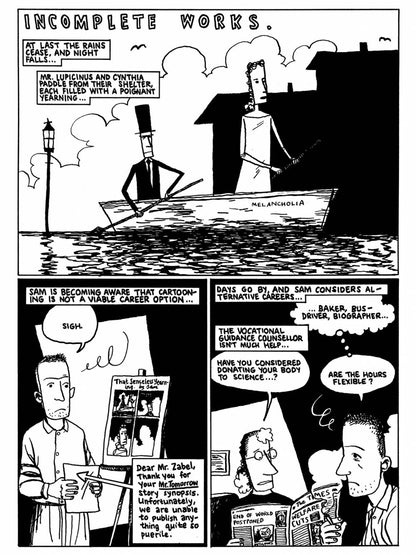 Daydreams, fantasy, true love and procrastination feature strongly in this marvelous selection of Dylan Horrocks' shorter comics. Running from 1986 to 2012, Incomplete Works is both the chronicle of an age and a portrait of one man’s heroic struggle to get some work done. From the creator of Hicksville and Sam Zabel and the Magic Pen.