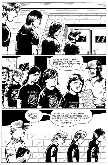 "A Birdsong Shatters the Still," is a story by Jeff Wilson with art by Ted May, starts off early one spring morning as a gang of teens congregate outside high school getting high and discussing Maiden just before going to morning detention. But can these addled young adults make it through said detention without garnering even further punishment?