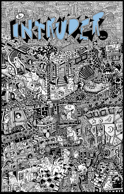 Intruder is a free publication produced quarterly by Seattle-area comics-makers. This issue features comics by Bruce Bickford, Max Clotfelter, Brian Dionisi Aidan Fitzgerald Joe Garber Seth Beastmeat Billis Helg, Ben Horak, Tim Miller, John Ohannesian, Marc J Palm, Darin Shuler, James Stanton, Scott Travis. Cover by Tom Van Deusen.