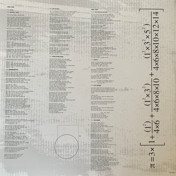 Tracklist: A1. (515), A2. People = Shit, A3. Disasterpiece, A4. My Plague, A5. Everything Ends, B6. The Heretic Anthem, B7. Gently, B8. Left Behind, B9. The Shape, C10. I Am Hated, C11. Skin Ticket, C12. New Abortion, C13. Metabolic, D14. Iowa