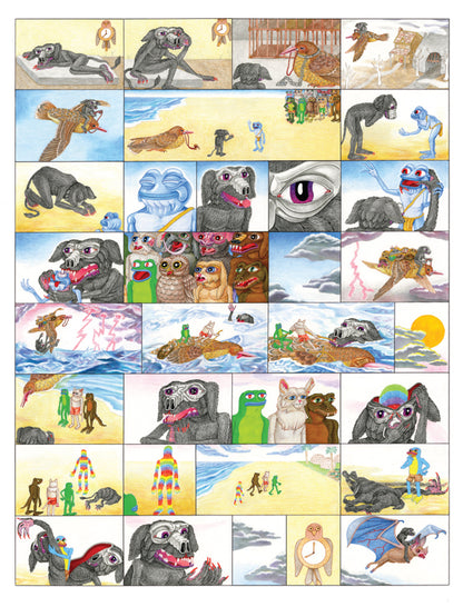 The seventh volume of Kramers is a gigantic full-color 16 x 21 inch hardcover! While past issues explored an innovative blend of art and comics, this collection focuses on expanding the boundaries of the narrative comics page. No. 7's massive page size has given these contemporary artists an opportunity to tell stories at a scope not seen since the expansive Sunday newspaper comics of the early twentieth century. Including over 50 of the world's greatest cartoonists.