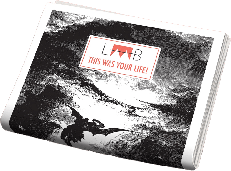 The second issue of Ronald Wimberly's annual art tabloid on identity and visual culture, LAAB MAGAZINE (LAAB numbering is non-sequential.) LAAB #4: THIS WAS YOUR LIFE! concerns themes of death and environmental devastation, horror, hauntology, necropolitics, and the anthropocene. We ask what it means to die, and what it means to live -- and what might have to die for a future to be born.