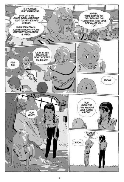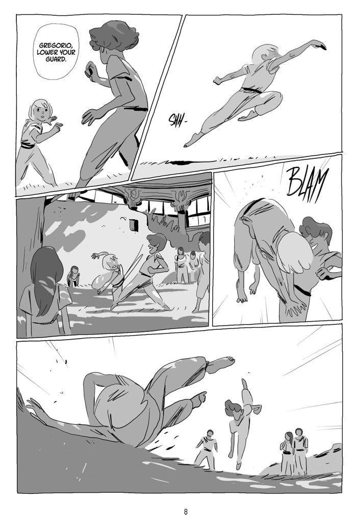 The Games are already underway when Richard Aldana arrives in town. This mysterious stranger seems to have more in common with our world than the world where the Games are held. He smokes cigarettes and wears a leather jacket while everyone else in this medieval realm is casting spells and weaving tapestries. Nobody knows what to make of him, but when Aldana enrolls in the games he quickly becomes a top contender. Eschewing magic and using only his martial arts prowess, Aldana also befriends and protects a small boy for reasons as mysterious as his origins.