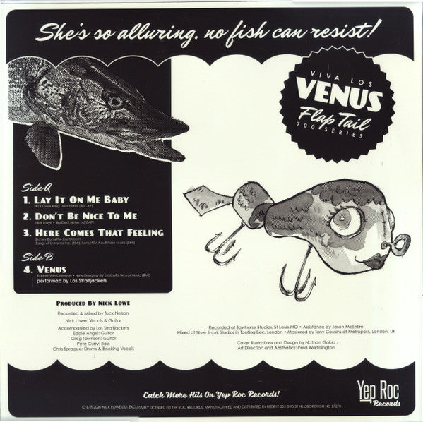 Nick Lowe strikes again with a brand new EP, Lay It On Me, where he is once again joined by his gang of masked musicians, Los Straitjackets. The limited edition EP features two new originals from Nick, "Lay It On Me Baby" and "Don't Be Nice to Me," plus a cover of Dorsey Burnette's "Here Comes That Feeling" (made famous by Brenda Lee). Nick's wordplay and razor-sharp lyrics shine bright with the twang-friendly tones of Los Straitjackets behind him. On Side B of the EP is the first track that Nick has produced in over two decades that wasn't one of his own performances: Los Straitjackets turning Shocking Blue/Bananarama's "Venus" into a surf rock staple.