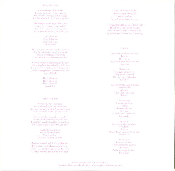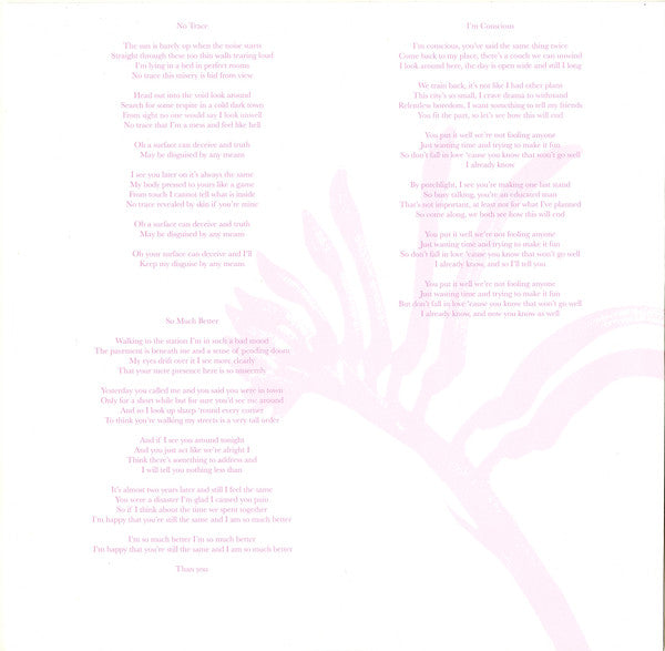 Tracklist: A1. No Trace, A2. Hype Sleep, A3. So Much Better, A4. Leaving For Japan, A5. I'm Conscious, B1. Don't Follow Me, B2. Heart Of Hearts, B3. Took A Long Time, B4. Creep Out Of Bed, B5. Push On