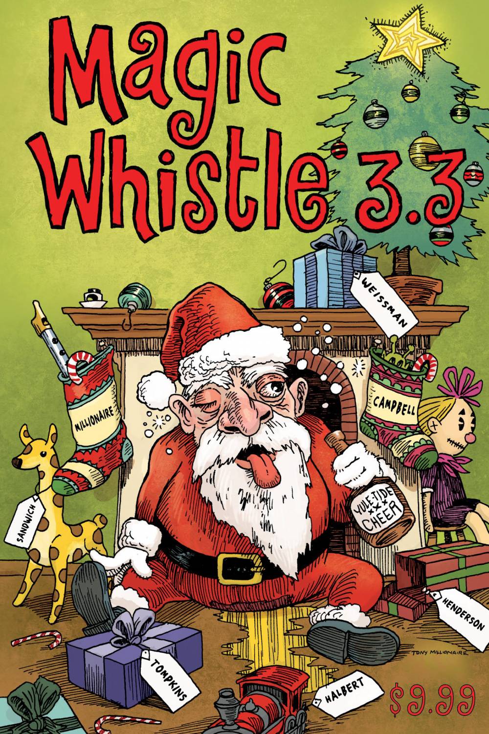 Magic Whistle returns with a full color holiday special. Guest artists this issue include Corinne Halbert, Jen Sandwich, Barack Hussein Obama and Yikes creator Steve Weissman and the return to comics of legendary Trailer Trash creator Roy Tompkins. Loaded Santa Clause cover art by Drinky Crow creator Tony ‘Maakies’ Millionaire with color by Jim Campbell.