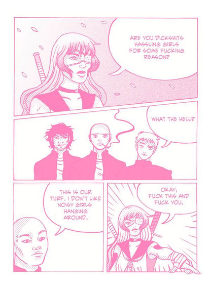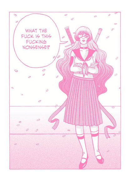It's Par 2 of Jenn Woodall's Magical Beatdown! Hyper violent street harassment revenge fantasy in the style of Sailor Moon about about an average schoolgirl who transforms into a foul-mouthed and rage-fuelled Magical Girl. Watch in awe as she swiftly disposes of street harassers and uses her array of magical weapons, printed in fluorescent pink and blue.