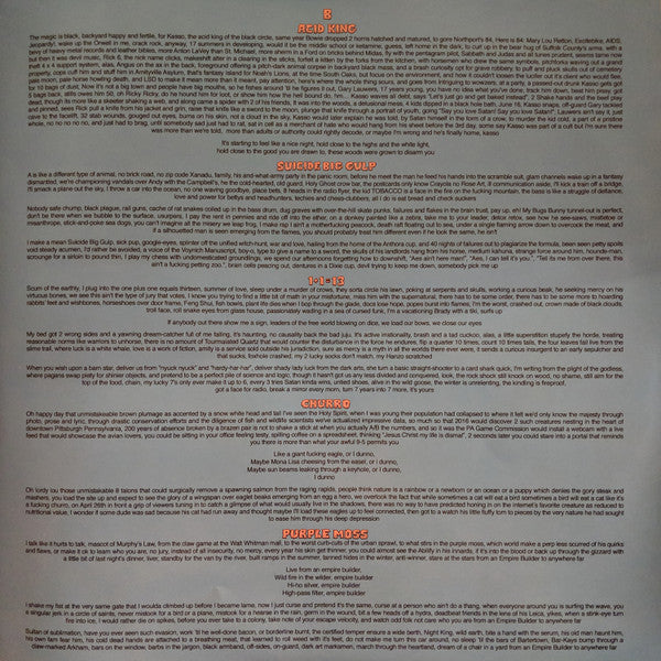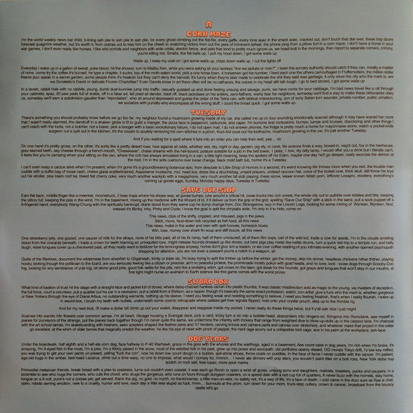 Tracklist: A1. Corn Maze, A2. Tuesday, A3. Save Our Ship, A4. Sword Box, A5. Dog Years, B1. Acid King, B2. Suicide Big Gulp, B3. 1 + 1 = 13, B4. Churro, B5. Purple Moss
