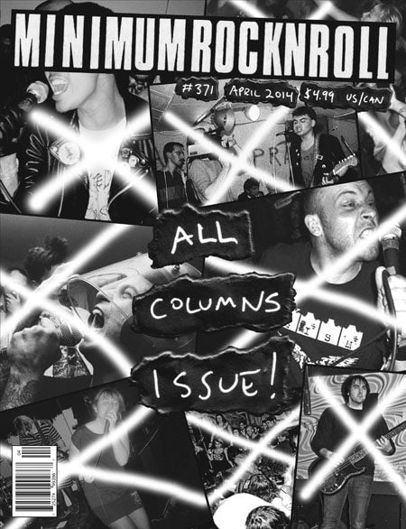 MRR #371, April 2014: the All Columns Issue! With topics such as Detroit powerhouse Bill Bondsmen, très productive French punk label Crapoulet Records, legendary ex-Yugo pioneers O! KULT, New York’s catchy punks Rational Animals, and the New York’s Alright festival. We’ve also got UK hardcore ragers STAB and WOOLF, Minneapolis hardcore D-beat ladies VARIX, and a Miami scene report. All of this, plus record, zine, book and movie reviews, all the columnists you could ask for, New Blood, Shitworker of the Month, and much more!