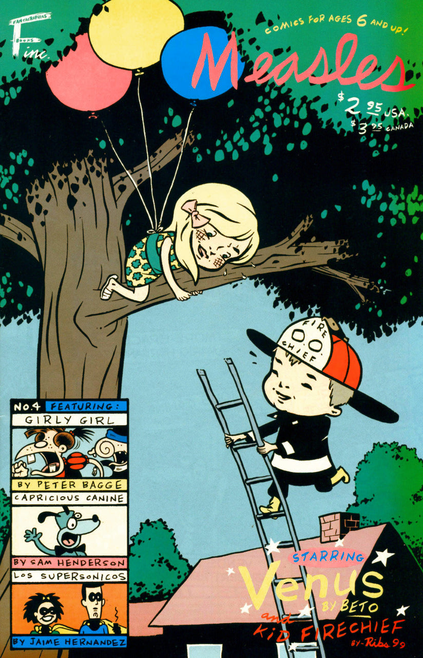 Measles, from alternative publisher Fantagraphics, bills itself as comics “for all ages.” By Fantagraphics standards, Measles is indeed light fare, with a bunch of charming, inoffensive and generally entertaining stories that could be enjoyed by kids of all ages, and by girls at least as much as boys.