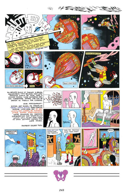 MEATHAUS has been a comics anthology since the year 2000, a website, some art shows, and a plate of novelty shaped cookies. Since its founding days its pages have been filled with comics sensations such as Farel Dalrymple (Pop Gun War, Omega the Unknown), James Jean (Process: Recess, Fables), Tomer Hanuka (Bipolar), Thomas Herpich (Cusp, Gongwanadon), Brandon Graham (Escalator, King City) and Dash Shaw (The Bottomless Belly Button). Now a new gang of young creators have joined the Meathaus to form the largest group of awesome dudes who like to rock yet.