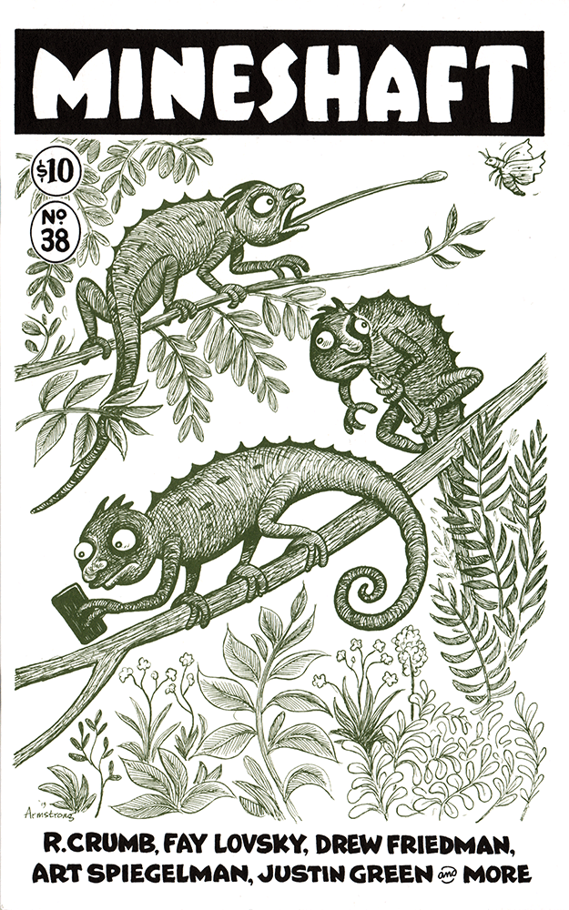 Beautiful front cover art & design by Robert Armstrong! Also featuring new work from R. Crumb, Art Spiegelman, Drew Friedman, Fay Lovsky, Justin Green, Christoph Mueller, Noah Van Sciver, Aaron Lange, Aleksandar Zograf, Gioia Palmieri, Robert Armstrong, O. J. Heller, Bill Griffith, William Crook, Jr., & Pat Moriarity! Plus Letters from Around the World & MORE!!! First printing. 48 pages. 750 copies printed on offset press in November-December, 2019. Cover printed on French Paper Company "Pop-Tone Whip Cream" Cover paper.