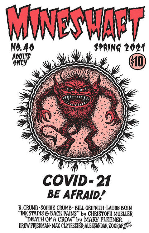 Featuring beautiful Front & Back Cover art by Robert Crumb! PLUS new work by R. Crumb, Sophie Crumb, Drew Friedman, Laure Boin, Bill Griffith, Christoph Mueller, Mary Fleener, Max Clotfelter, Robert Armstrong, Denis Kitchen, Rika Deryckere, Gioia Palmieri, Aleksandar Zograf, John Porcellino, a GIANT Letters section, Mineshaft Index (#31-40) & More!!!
