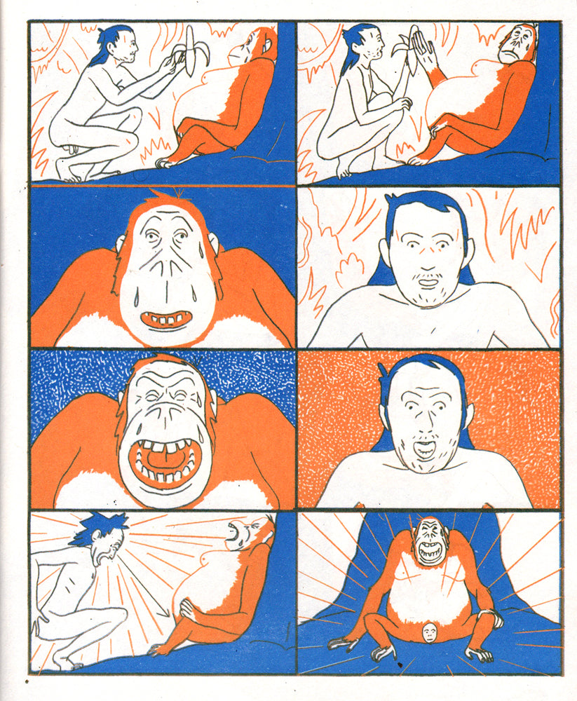 A fantastic use of layout and design by critically-acclaimed Olivier "Ollie" Schrauwen, printed in orange and blue spot colors.