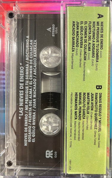 Tracklist: A1. Nieves de Enero, A2. Me Persigue Tu Sombra, A3. Nocturno A Rosario, A4. Florita Del Alma, A5. El Crimen De Culiacan , A6. El Guilo Rivera, A7. Juan Machado, A8. Arcadio Barraza, B1. Dimas, Regulo Y Miguel, B2. Ramoncito Quiñonez, B3. Juan Ayon, B4. Martin Felix, B5. Rodolfo Garza, B6. Manuel Peinado, B7. Hermanos Mata