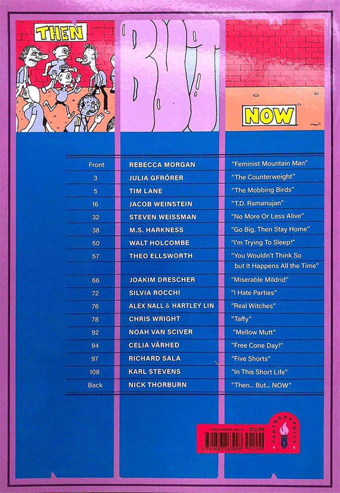 Along with other surprises, Now #10 includes one other special feature: a tribute to the late cartoonist Richard Sala (1954-2020), a cartoonist who built his long career contributing to various anthologies of the 1980s, including the legendary Raw magazine. We are pleased to present nine previously unpublished pages of comics by Sala, all created as an art student in the 1970s and presaging a prolific and brilliant oeuvre to come. Also: comics by Nick Thorburn, Jacob Weinstein, Chris Wright, Joakim Drescher, and Julia Gfrörer.