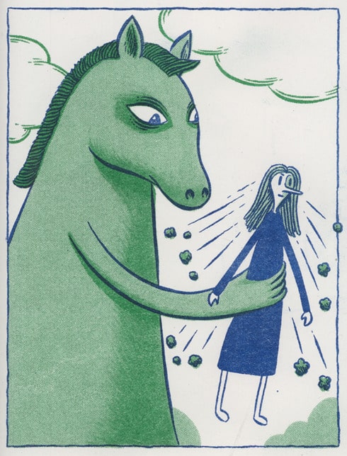 Andrice Arp co-edited and co-founded Hi-Horse Comics in 2001, and has work in the anthologies Mome, Scheherazade, the Graphic Canon, Runner Runner, and The Big Feminist But. She does things backwards, and is just now getting around to making her first minicomics and zines.