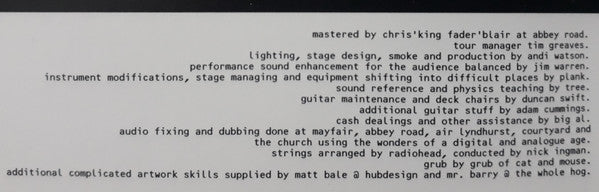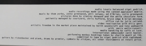 Tracklist: A1. Airbag, A2. Paranoid Android, A3. Subterranean Homesick Alien, B1. Exit Music (For A Film), B2. Let Down, B3. Karma Police, C1. Fitter Happier, C2. Electioneering, C3. Climbing Up The Walls, C4. No Surprises, D1. Lucky, D2. The Tourist