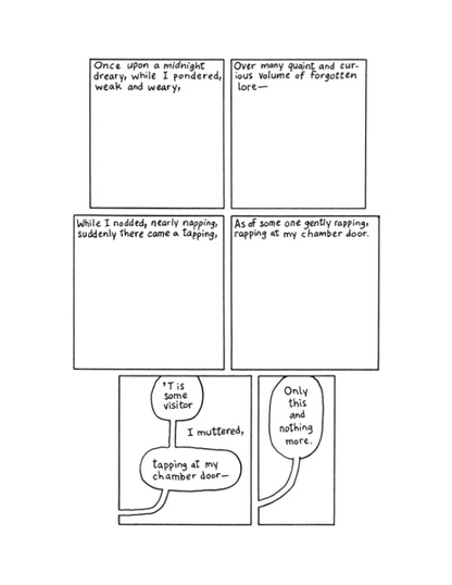 "Orchid contains seven black and white adaptations of Victorian-era short stories, all of which involve shocking apparitions. It's a brilliant conceit by editors Ben Catmull and Dylan Williams. The most amusing of these is "Tobermory," adapted by Gabrielle Bell from a story by H.H. Munro, about a housecat who, upon being taught to speak, reveals its owner's most embarrassing secrets. Fantastic animals become a kind of sub-theme, as in David Lasky's adaptation of E.A. Poe's "The Raven." Testing the definition of a comic, instead of containing distinct images, the panels themselves form a picture when viewed as a whole. "Orchid" splendidly mixes modern comix storytelling with a bygone era's mastery of prose and atmosphere." -- Andrew Arnold, Time.com