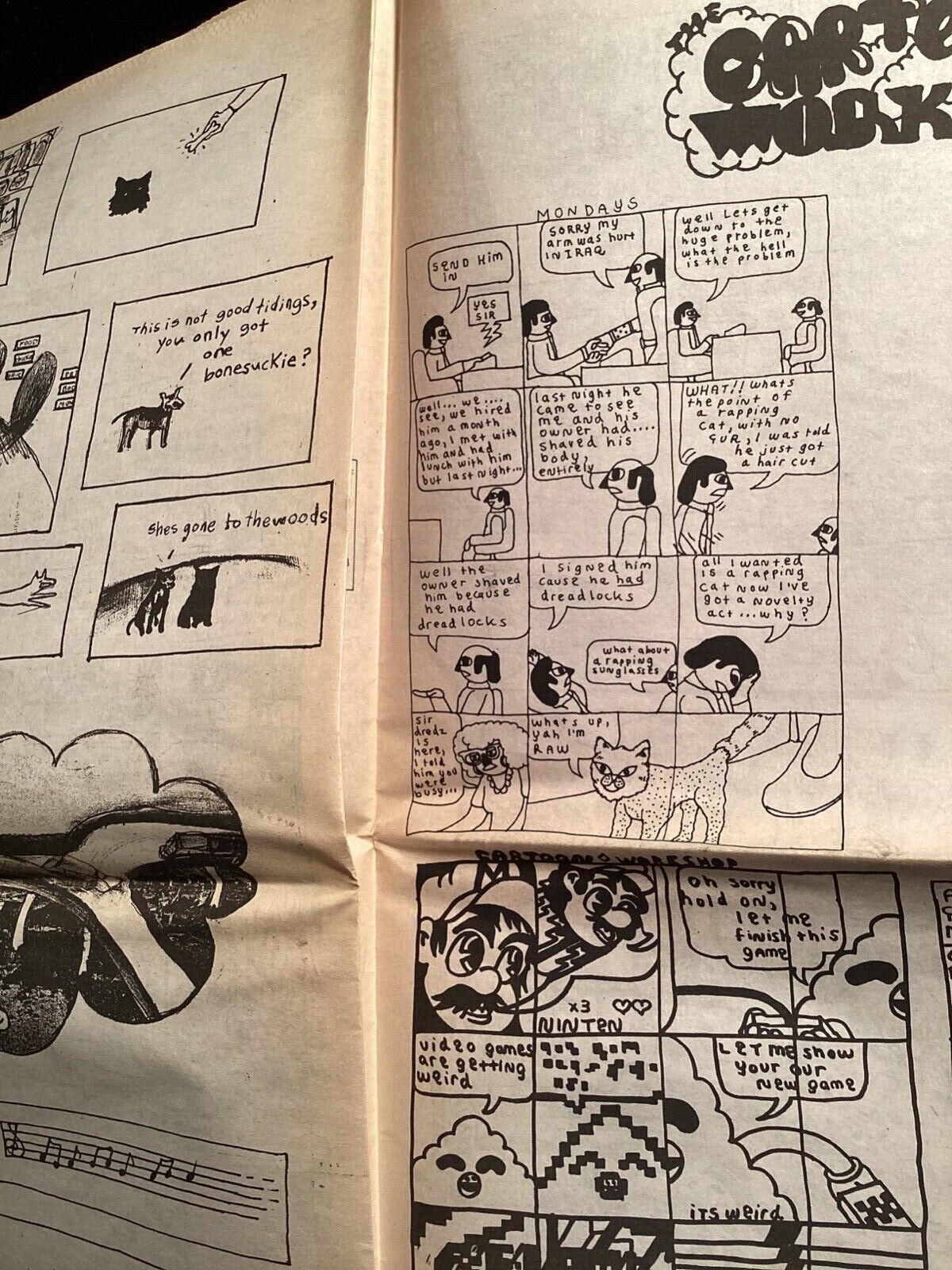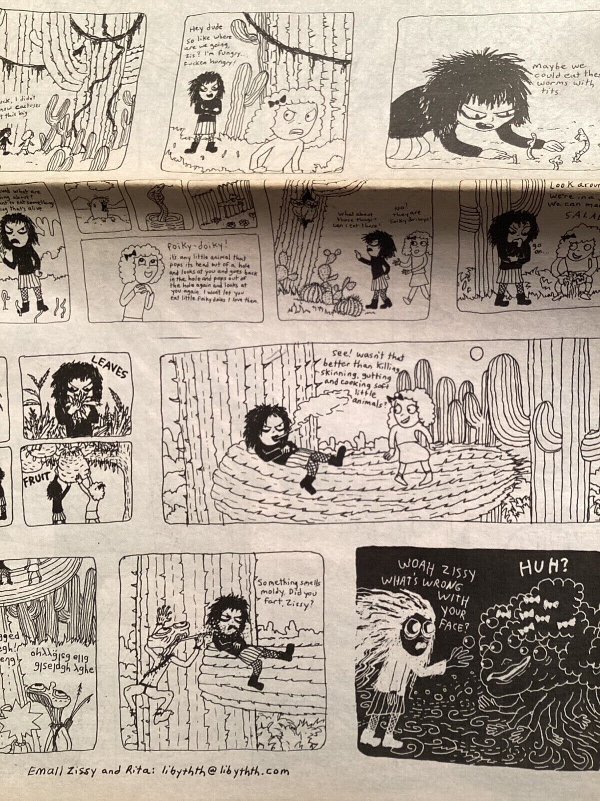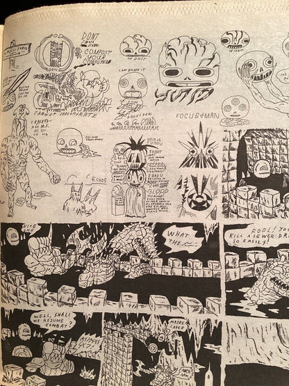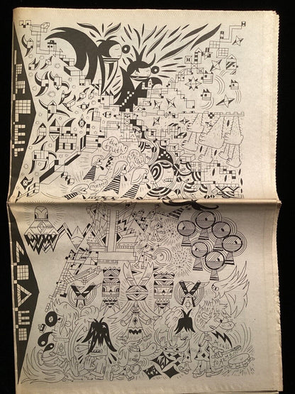 Paper Rodeo was a newsprint comics anthology created in Providence, Rhode Island and featured early work of many artists like C.F., Mat Brinkman, Jo Dery, Matthew Thurber, and Noah Lyons as well as other artists from the Fort Thunder and Paperrad collectives. The newspaper format allowed for free distribution and is reminiscent of old underground newspapers where underground comics were published in the 1960s and 70s. Each issue of Paper Rodeo is chock full of bizarre comic drawings and unconventional stories all resonating with vigorous creative energy.