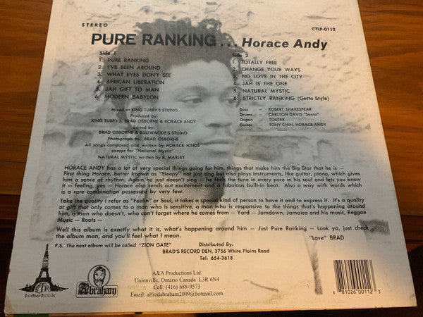 Tracklist: A1. Pure Ranking, A2. I've Been Around, A3. What Eyes Don't See, A4. African Liberation, A5. Jah Gift To Man, A6. Modern Babylon, B1. Totally Free, B2. Change Your Ways, B3. No Love In The City, B4. Jah Is The One, B5. Natural Mystic, B6. Strictly Ranking
