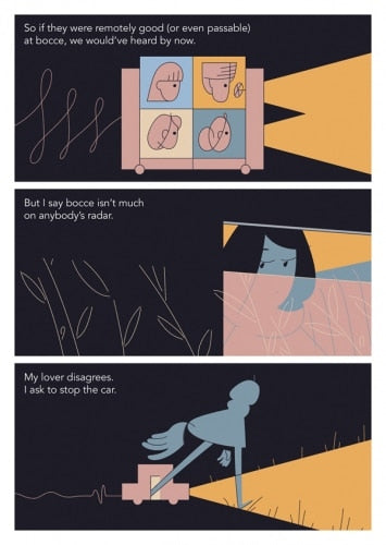 A dreamlike love-story-in-a-love-story: of symmetrical apartments and abandoned plays, shared lovers and former lovers’ lovers' lovers, and bocce -- and not a word on love.